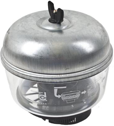 Full-View pre-cleaner helps extend filter life. Centrifugal force in bowl separates up to 75% of incoming dust before it enters the engine air intake system. Low maintenance. Durable, lightweight, noncorrosive construction. Full-view plastic bowl lets operator easily see when service is needed. One-bolt cover retention for easy service. When dirt reaches the level of the arrow, remove top nut and plastic body, then empty � no tools require. Mounting clamp included.